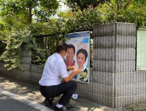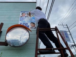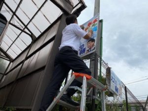 8月1日(日)、連日の猛暑。街頭演説も目に汗が入る。 ポスター貼りも遊説活動の途中で新規に貼らせていただいたり、色の褪せてしまったポスターを貼り替える。 すべ... -