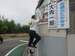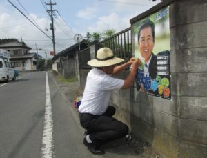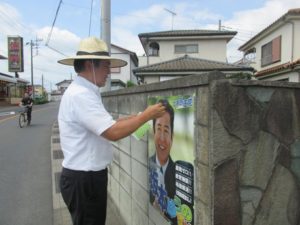 8月17日(月)、終日遊説&ポスター貼り活動。 午前中は昨日より涼しいというか暑くない。 しかしさすがに午後になると日差しも最強、街頭演説で額に流れる汗はシ...