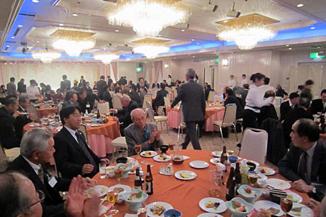 1月20日(金)、市内ホテル紫雲閣において東松山市商工会賀詞交換会が開催されました。来賓には森田光一東松山市長・江野光一埼玉県議会議員をはじめ多くの方々がお見えになりました。私は前市長としてご案内をいただき手締めのご挨拶をさせていただきました。伊藤一久商工会長をはじめ100名ほどの会員が一堂に会し、有意義な情報交換会となりました。