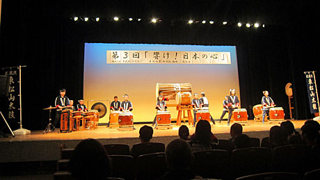 また、東松山市民活動センターにおいて、東松山市鼓遊連第3回「響け!日本の心」演奏会では5団体が演技を披露(写真下)。勇壮な太鼓の音は魂をゆさぶります!