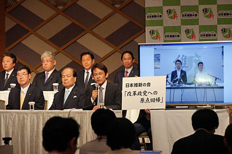 松野幹事長から報告のあった30日の両院議員懇談会終了後、私は幹事長に橋下代表率いる日本維新の会に所属することを意思表明しました。橋下新党は統治機構改革や社会保障改革などの政策分野を争点に自民党との対立軸を明確にし、与党になりえる野党の政界再編成に取り組んでまいります。