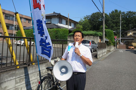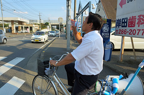 9月22日(月)、今日は一日地元の自転車街頭演説。あまり汗はかかないけれどジリジリと照りつける太陽。