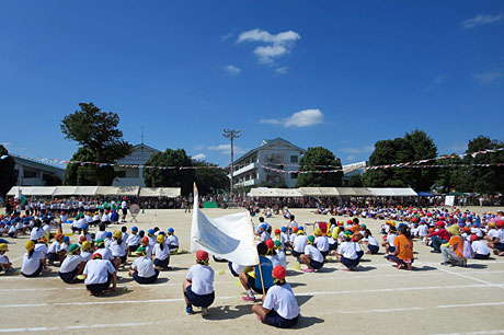 母校の松山第一小学校。今日は一日家族で応援。私の父も母もそして子どもたちも、その子どももこの校庭で運動会。