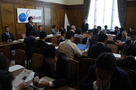 そして代議士会、本会議。代議士会は本会議が開催される20分前に必ず開かれ、各議員に本会議での法案に対する賛否の確認や情報交換、意見調整を行います。衆議院議員が全員出席するので議員同士の情報交換も行われます。
