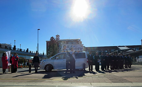 12月2日(火)、衆議院解散総選挙公示。朝、松山神社にて必勝祈願。そして東松山駅において出発式。衆議院としての2年間の実績が問われる選挙。