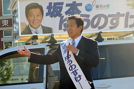〈身を切る改革・行政改革を断行します〉〈子育て教育政策の充実を実現します〉〈原発ゼロを目指します〉〈地方分権・道州制の推進を図ります〉
