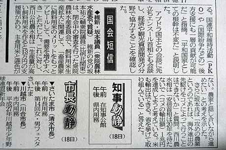 また、昨日の埼玉新聞には13日に閉会中審査が開催された、農林水産委員会での質問要旨が掲載されました。