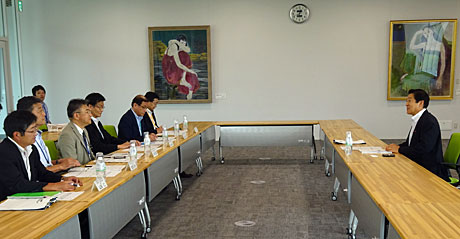 小林哲彦産業技術総合研究所理事、大和田野芳郎福島再生可能エネルギー研究所所長をはじめ、関係の方々にご説明をいただきました。