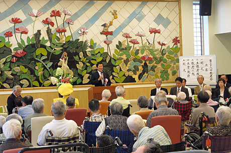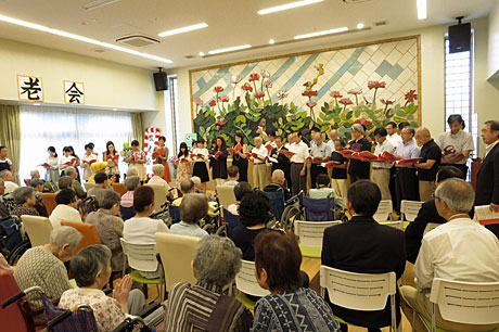第38回を数えるということは、日本スリーデーマーチの開催年数と同じ。長年にわたり郷土の福祉行政推進に大きな役割を果たしてきた施設。今日は地元コーラスグループ「五月会」の皆さんが歌を歌ってお祝いを。楽しいひとときとなりました。