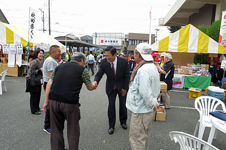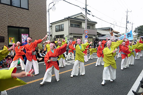 多くの方々にお会いしました。例年夏のイベントとして開催されてきた坂戸よさこいは、本年秋に開催され。通りでは坂戸市の各県人会の方々が故郷の銘産物を販売、また中央会場も多くの露店や来場者で賑わっていました。