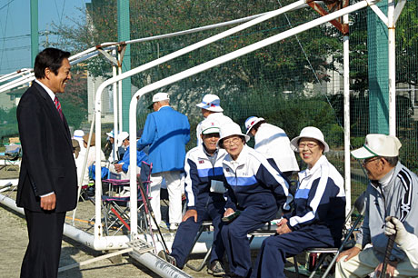 10月19日(月)、第44回東松山市市民総合体育大会ゲートボールの部・第25回東松山市ゲートボール大会が横川喜八連盟会長のもと、唐子グランドにおいて盛大に開催されました。私は体育協会会長としてお伺いし、ご挨拶を申し上げました。