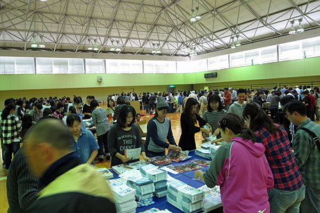 日本スリーデーマーチ開催のための参加賞袋詰め作業。今年も体育協会・レクリエーション協会・スポーツ少年団から多くの方々にお手伝いいただき作業を行いました。