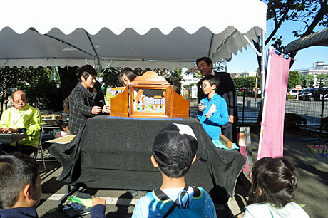 昔懐かしい紙芝居が、子どもたちの飛び入り参加で行われ。