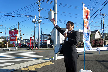 12月19日(土)、まちかど街頭演説。今日は昨日と打って変わって風が強く寒かった!