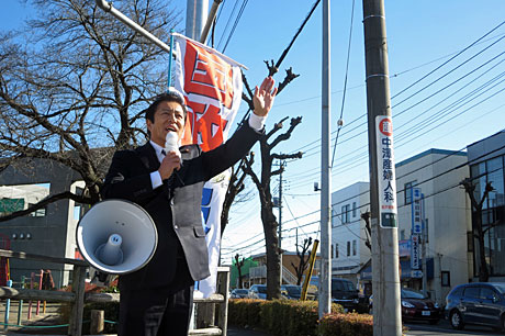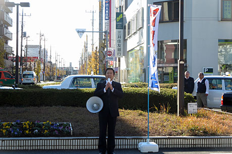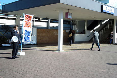 鶴ヶ島の駅前や商店街で。今日は旗竿が倒れてしまうほど風が強く吹きました。商店街で女性の方にいただいたホットコーヒーは甘く温かく、疲れも吹き飛び気持ちもリフレッシュ!いろいろな出会いがあります。