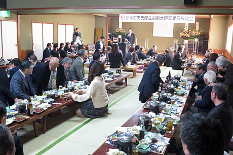 本会議終了後、地元に戻り、伊藤丈夫氏の厚生労働大臣受賞祝賀会に出席。近並重雄比企調理師会会長が発起人代表を務め、松音屋において盛大に開催されました。
