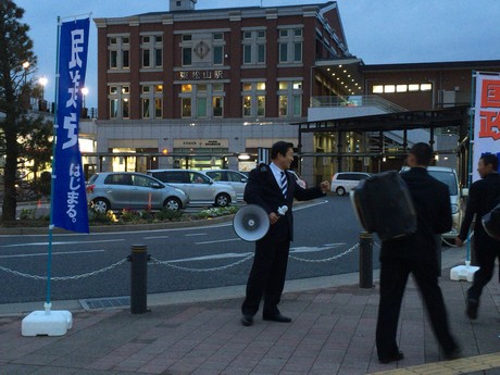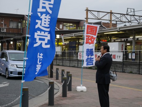 今日は金曜日。「金帰火来」と言われ国会議員が本会議後あわただしく地元に帰郷します。そして、本会議が予定される火曜日の朝、国会に戻って来る。私は帰れるので、基本的に地元から通っています。今日は帰り道、地元駅前での街頭演説。