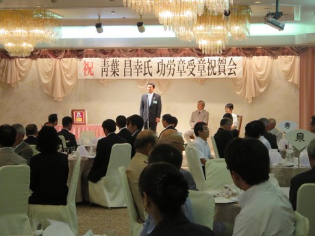 7月15日(金)、東松山市紫雲閣において靑葉昌幸先生の「日本陸上競技連盟 功労賞受賞祝賀会」が盛大に開催されました。この功労賞は日本の陸上競技発展・普及に寄与・功績のあった方に授与されるもので、大正14年の陸連創立以来、古くはマラソンの父と言われた金栗四三氏、陸上の神様と言われた織田幹夫氏、人見絹枝氏が受賞されています。
