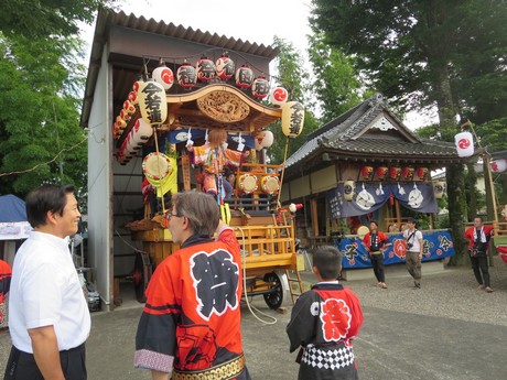今宿八坂神社天王様。見事な山車にびっくり!上部が回転できるようになっていて、後部には大きなブレーキもあってタイヤも鉄で昔さながら。来年はぜひ、引いている姿を見てみたい。