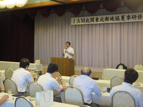 2016年度JAM北関東埼玉県連北部地区協議会夏季研修会。安部吉弘JAM北関東埼玉県連北部地区協議会会長のご案内をいただき、国政報告を申し上げさせていただきました。日頃から働く方々のためにご尽力をいただいていることに深く感謝申し上げます。私からは民進党の現在の政策、アベノミクスと経済、原発、政治とカネの問題を中心にお話をさせていただきました。