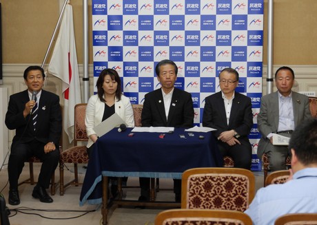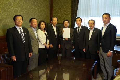 写真は左から坂本祐之輔、大島九州男参議院議員、太田和美衆議院議員、平野博文衆議院議員、衆議院事務総長、高木義明衆議院議員、中川正春衆議院議員。