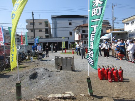 6月3日(日)、8町内合同防災訓練。暑い日になりましたが、各町内から多くの方々が参加。