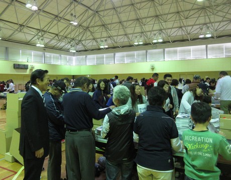 10月27日(土)~28日(日)、東松山市体育協会・レクリエーション協会・スポーツ少年団の代表の方々にお集まりいただいて第41回日本スリーデーマーチの袋詰め作業で御礼のご挨拶。