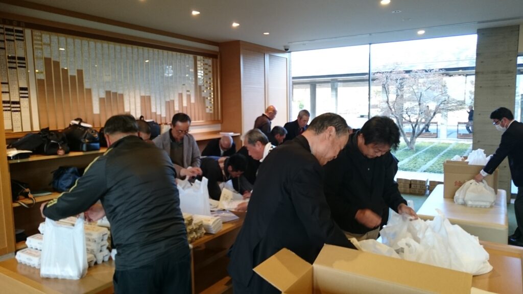 私は主催者として朝6時過ぎから、各競技団体の方々と袋づめの手伝い。