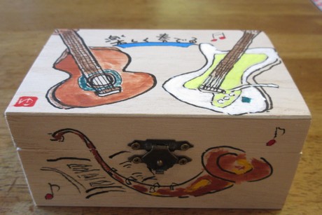 100均で買ってきた小箱にアクリルで絵を描いて。