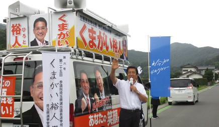 7月9日(火)、立憲民主党公認くまがい浩人候補者の遊説カーが10区(10市町)に入りました。