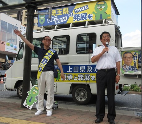 今日は大野もとひろ候補が上田きよし埼玉県知事と共に東松山駅に遊説に!
