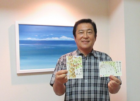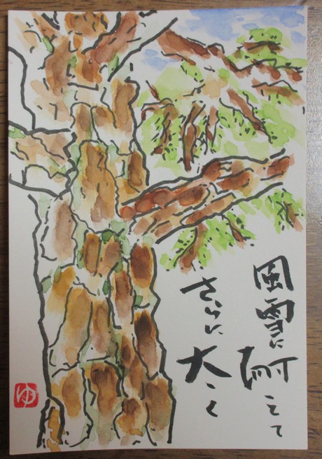 絵手紙サークル「みもざ」の皆さんが箭弓稲荷神社でスケッチ。
