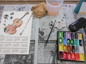 今日は趣味のバイオリンを題材に来年のカレンダー制作。