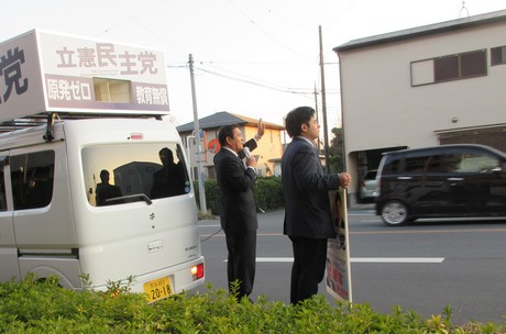 一緒にまちかど街頭演説。