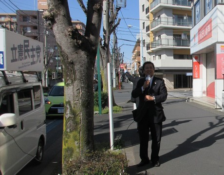3月20日(金)、今日は「中村ひろし」君と坂戸市内を街頭演説。