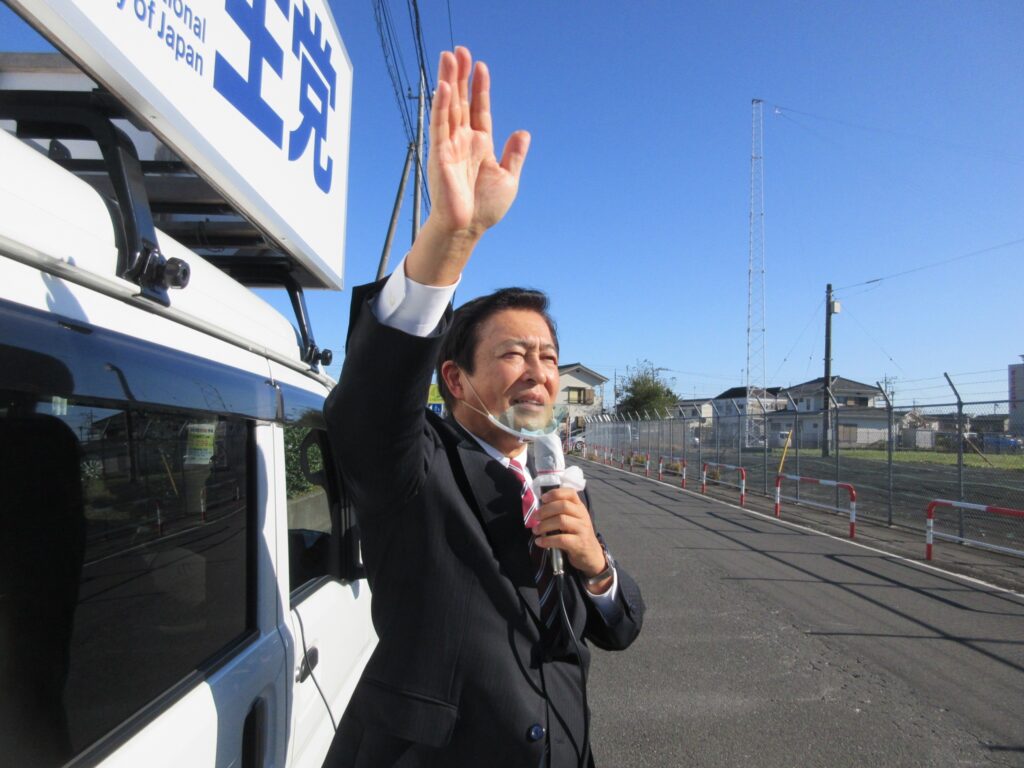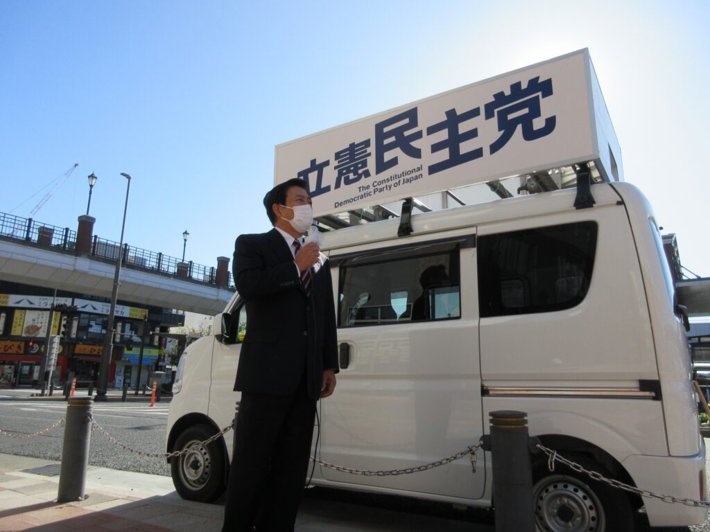 11月14日(土)、今朝は東松山駅から街頭演説スタート。