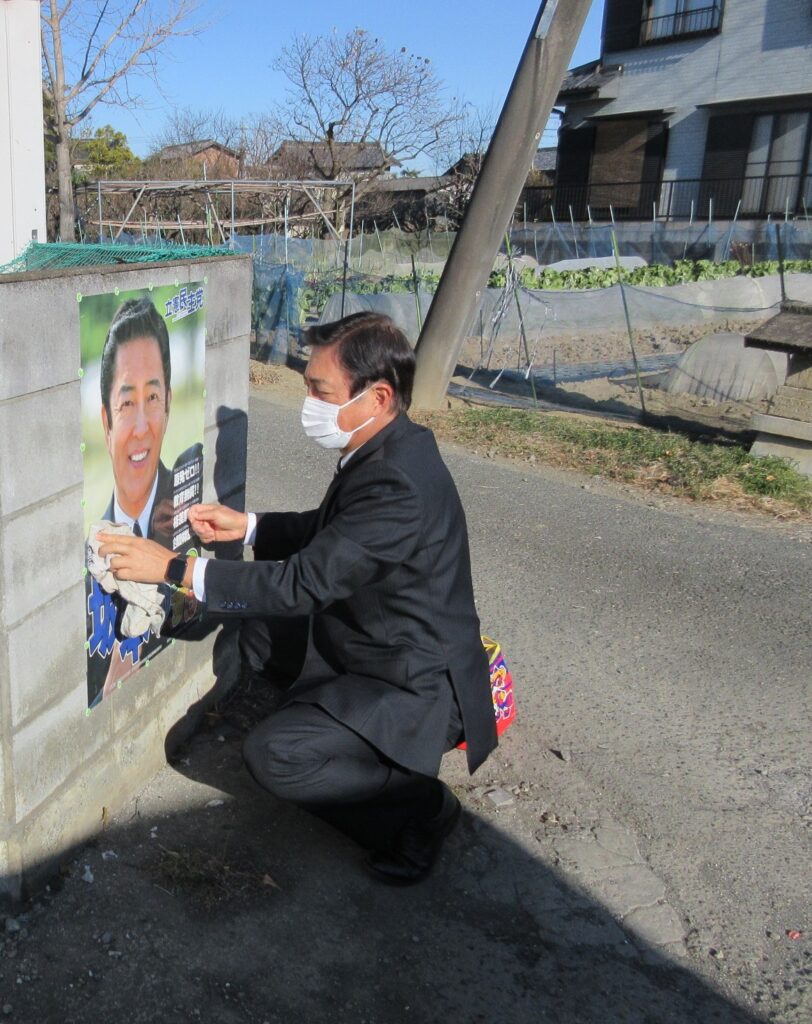12月26日(土)、今日も一日遊説活動。 ポスターを貼りながら街頭演説。 日暮れ前の街頭演説で、農家の方がお出になってお聞きいただきました。 ありがとうございました! ここ数日、日が伸びてきたことを遊説活動で感じます。 活動報告 URLをコピーしました! 連合埼玉から推薦状 中村市議と共に
