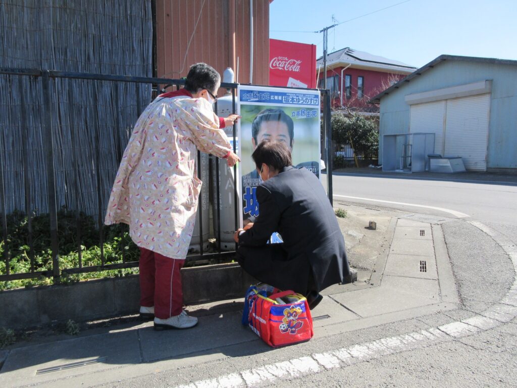 2月24日(水)、今日は坂戸市で10枚ほどのポスターを貼らせていただきました。
