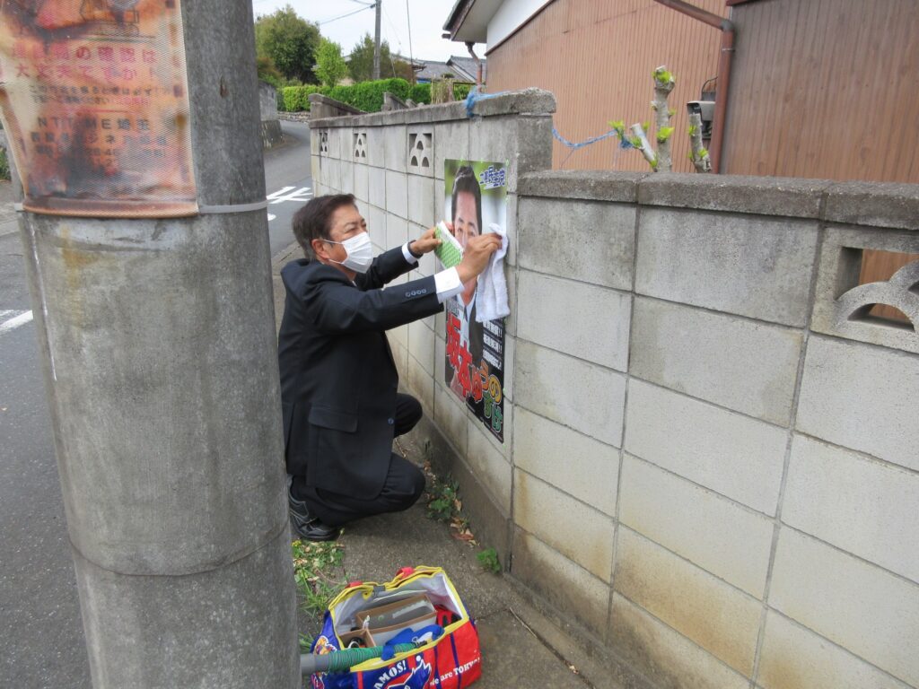4月14日(水)、今日は東松山~吉見のポスター貼りそして遊説活動。