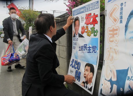 4月28日(水)、今日は終日ポスター貼り活動。