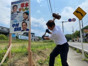 6月8日(火)、今日は小川町でのポスター貼り作業。