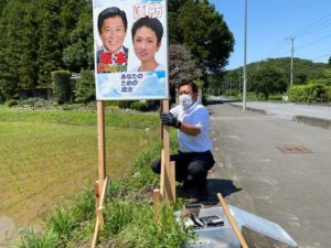 暑くなって一日に10ヵ所ほど看板を設置するのが精いっぱい。