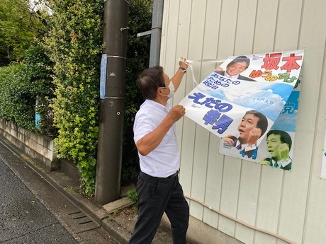 8月8日(日)、台風接近とあって午前中は雨。 色あせたポスターの貼り替えも小雨なのでササっと。 今日は日曜日でも人影は少なく静かな一日でした。 活動報告 URLをコピーしました! さわやかな気持ちで ひたすら遊説カーから