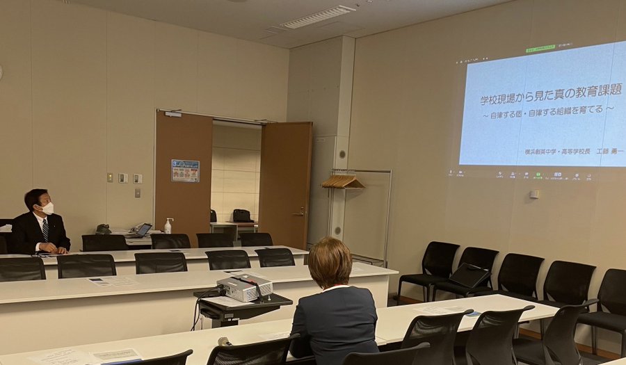 工藤勇一横浜創英中学・高等学校長から「学校現場から見た真の教育課題」〜自立する個・自立する組織を育てる〜の講演と質疑。