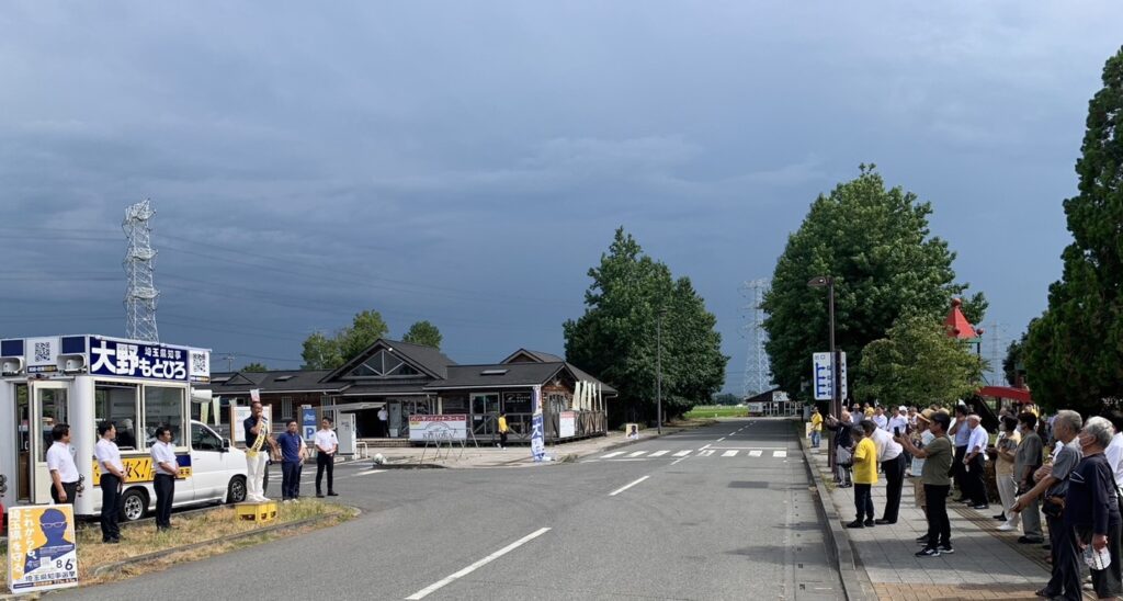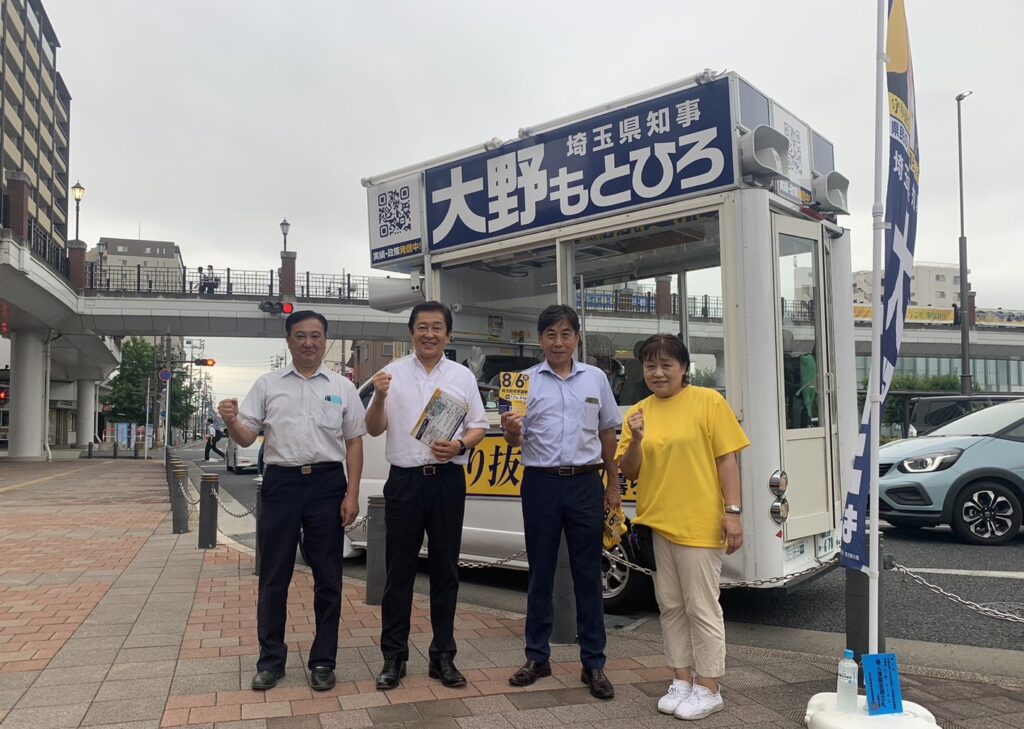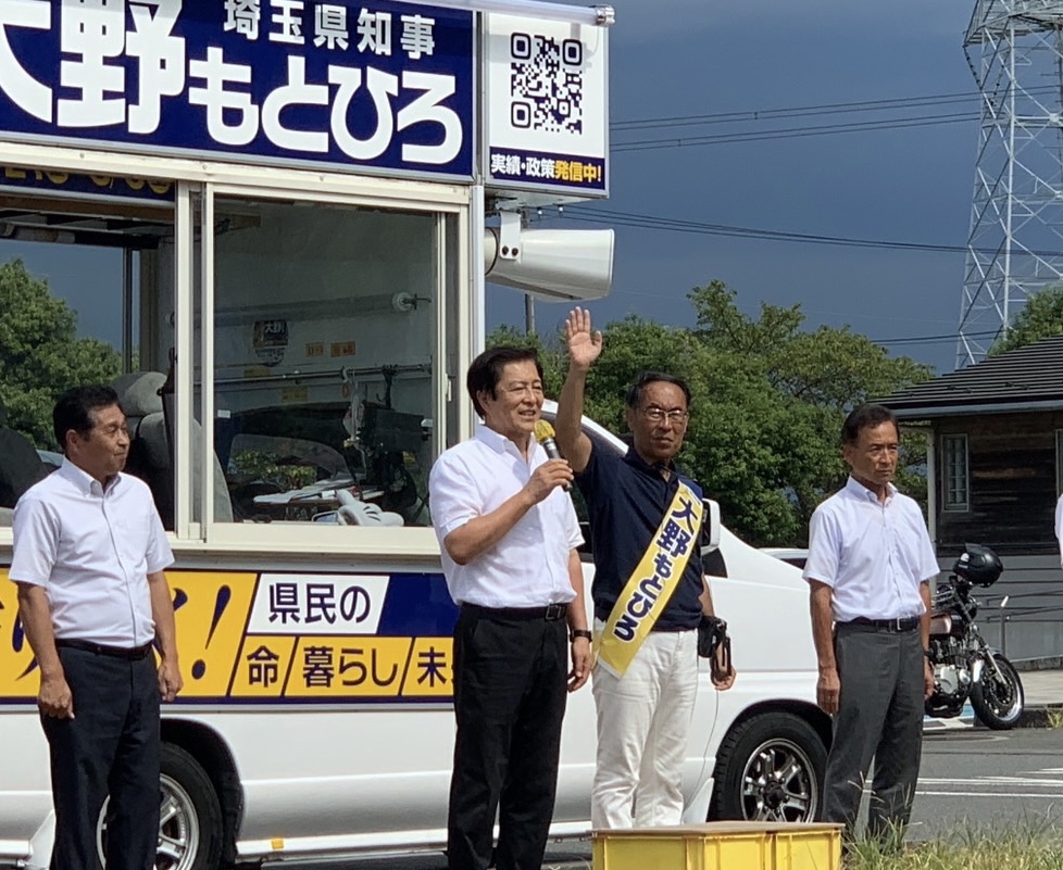 今朝は東松山駅において大野元裕埼玉県知事候と共に朝のご挨拶。いつもお世話になっている地元の市議会議員のみなさんも駆けつけていただきました。あの厳しかった選挙戦から早くも4年。この間の大野知事の県政運営は多くの県民から大きな評価をいただいております。そして吉見町「いちごの里吉見」にて大野元裕埼玉県知事候補のお訴え。地元宮崎町長をはじめ多くの方々が激励に駆けつけていただきました。私からは「大野知事を中心にして、今後も埼玉県の限りない発展のために皆様の力強い応援をお願いします!」とご挨拶。堂々とした当選を願っています!