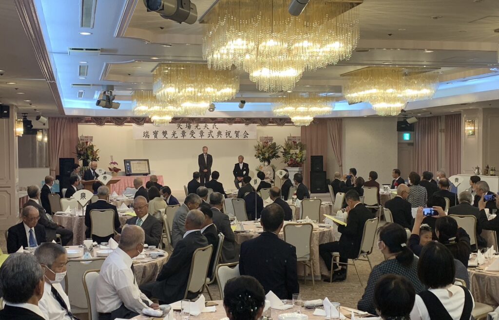 「矢場光夫氏瑞宝双光章受賞記念祝賀会」においてお祝いのご挨拶を申し上げました。矢場氏は私が東松山市長在職中に保護司に就任され、以来25年に渡り更生保護行政の推進に務められました。ご一緒に行政視察にも伺ったことがあります。心からお祝い申し上げ、今後の更なるご活躍をお祈り申し上げます。