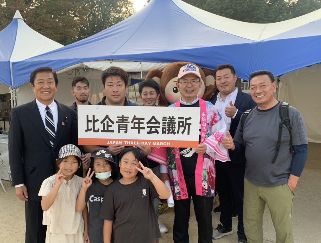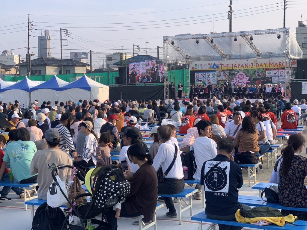 第46回日本スリーデーマーチ最終日。完歩式典でご挨拶。そして会場でご支援をいただいた方々にご挨拶。この3日間は天気も良く延べ5万人を越えるウォーカーの皆さんも比企丘陵の秋を楽しくウォーキングしていただいたと思います。大会実行委員会の皆様のご努力に深く感謝申し上げます!