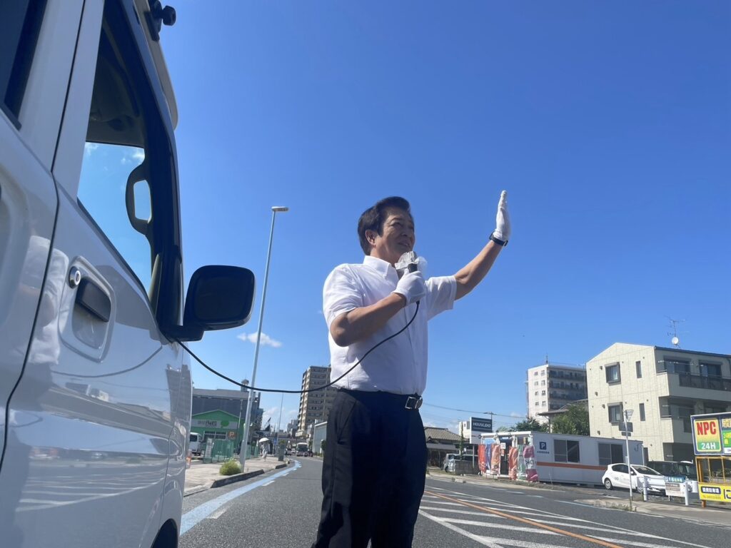 その後の街頭演説は日差しが強くて真夏のよう。6月でこんなに暑くて大丈夫かと思うくらいの夏日でした。