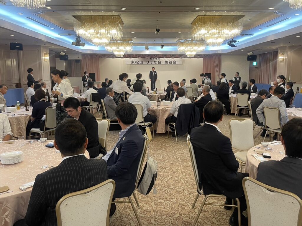 「令和6年度東松山りそな会」総会並びに懇親会が開催されました。地域経済を担っていただいている多くの事業所関係の方々が出席され有意義なひとときとなりました。一年ぶりにお会いした方々もいて、今の政治・経済状況の問題点等じっくりとお話しを伺うこともできました。
