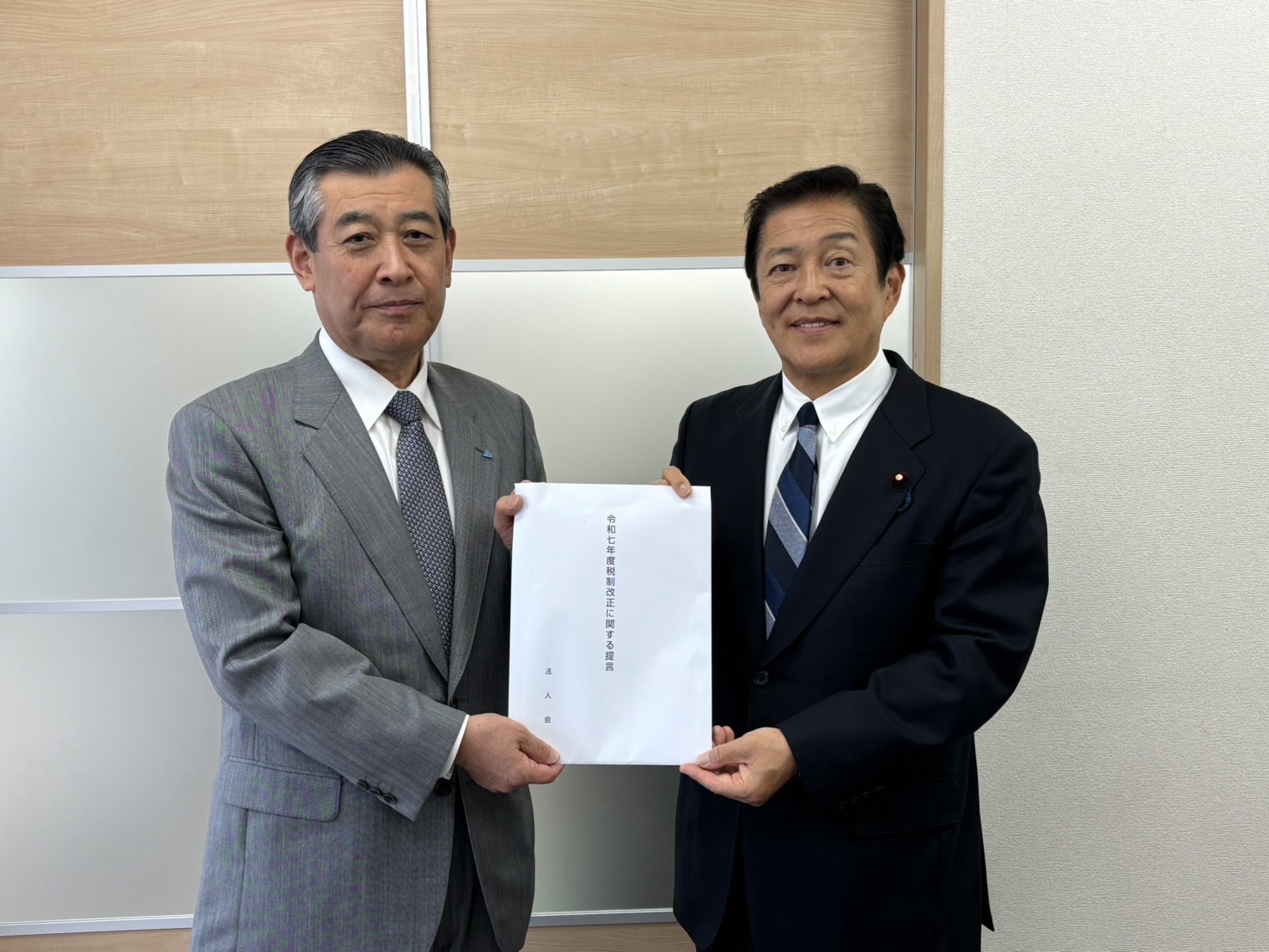 地元事務所にて、公益財団法人東松山法人会島村健会長より「令和7年税制改正に関する提言」をいただきました。